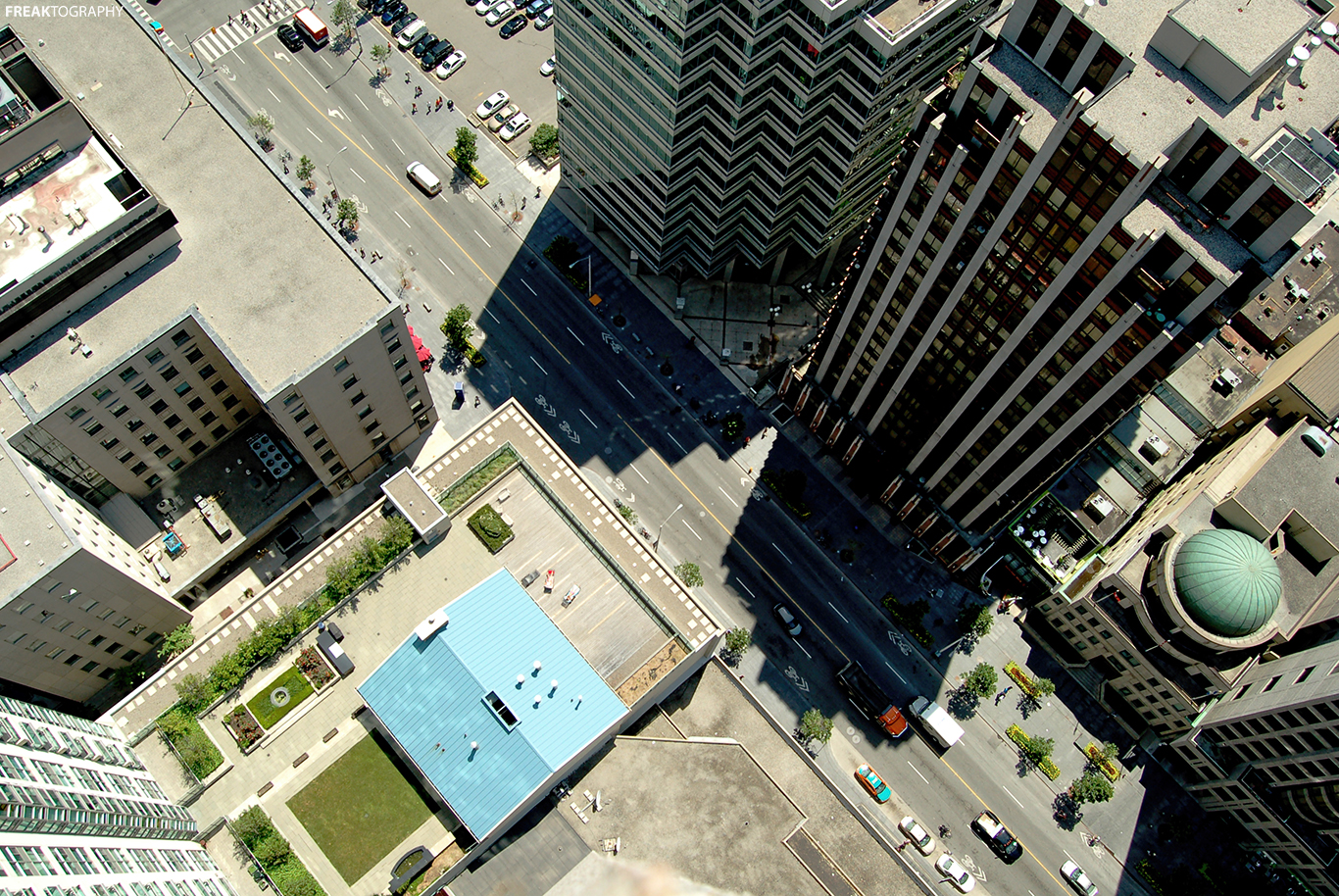 Quite possibly the main attraction when roofopping is the cityscape, the lights, the buildings, the long and winding streets. Hearing the ambulances scream through the city, watching the taxi’s zipping in an out and watching as all the condo lights blink on and off all around the core.