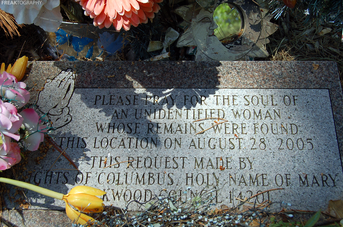 A roadside memorial had been set up and paid for by the local Knights of Columbus, it was placed near the site of where she was found. Now, 10 years after the date that she was found, there is still no name for the woman whom this roadside memorial is dedicated to.