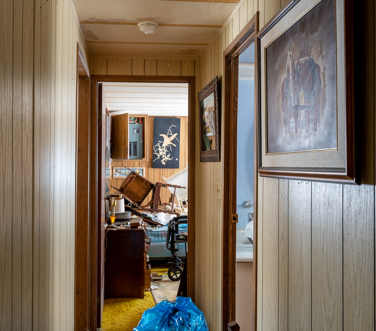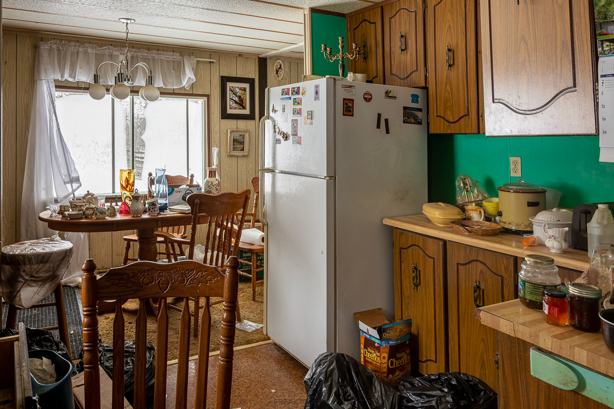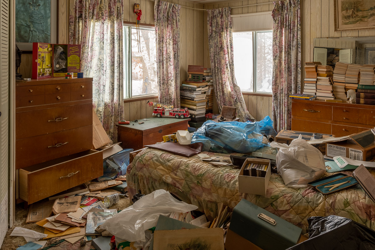Each bedroom was fully furnished, closets still full, dishes in the sink and so many books.