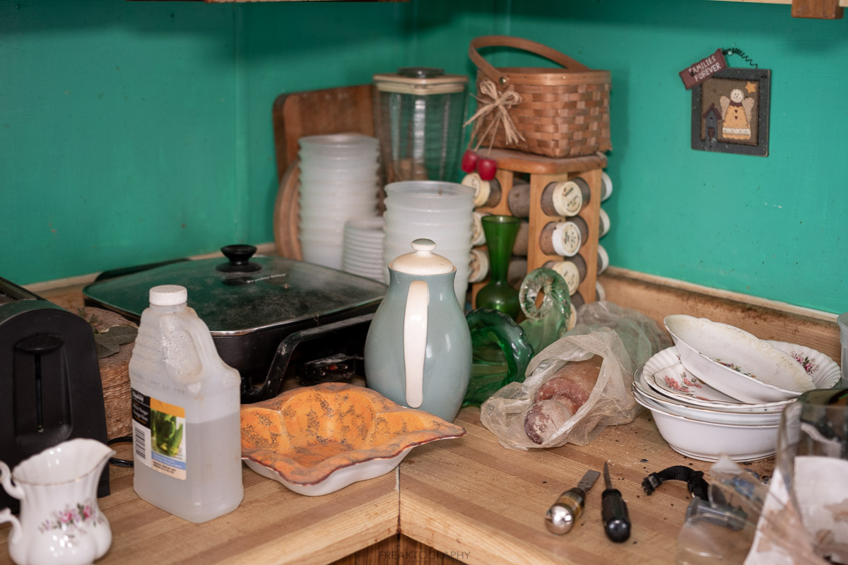 This house was an amazing absolutely full abandoned time capsule house. Wandering the rooms and halls I was constantly wiping cobwebs from my face as I stumbled around obstacles on the floor all while admiring the many treasures to be found!